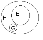 Здесь изображен типичный пример совместимых подчиненных понятий, где объем понятия, видового (G) и (Е) - является частью объема другого - родового (Н). А между собой эти понятия (G и Е) являются соподчиненными