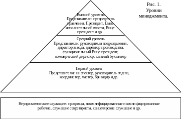 римером деления на уровни менеджмента по степени властных полномочий, субординации и выполняемым функциям может служить рис. 1.