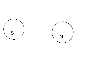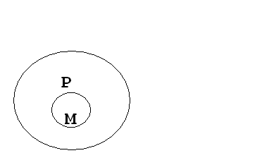 Диаграмма отношений между терминами в большей посылке A(MP) может быть такой, как это изображено на рисунке 2, а диаграмма меньшей посылки E(SM) изображена на рисунке 3.