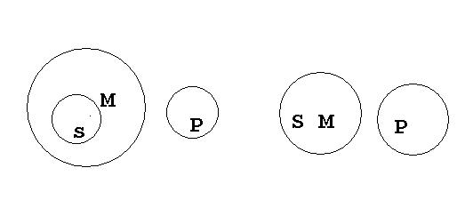 Очевидно что каждой из этих диаграмм может соответствовать заключение «Ни одно S не суть P». Поэтому этот силлогизм правильный, и, значит, при истинных посылках мы получим необходимо истинное заключение.