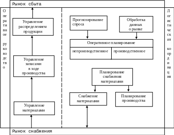 В рамках координационных функций логистики выделилось еще одно из ее направлений – оперативное планирование, продиктованное стремлением сократить запасы, не снижая эффективности производственной и сбытовой деятельности фирм. Суть его состоит в том, что на основании прогноза спроса, корректируемого позднее при поступлении реальных заказов, разрабатываются графики перевозок и в целом порядок управления запасами готовой продукции, которые в итоге и определяют планирование производства, разработку программ снабжения его сырьем и комплектующими изделиями.