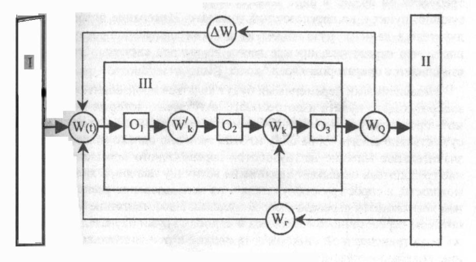 Здесь обозначено: I – грузообразующий пункт; II – грузопоглащающий пункт; III – перевозочный комплекс; W(t) – грузопоток перевозочного комплекса; WQ – транспортная продукция; Wг – потребности грузополучателя; W’k – плановая провозная возможность перевозочного комплекса; Wk - фактическая провозная возможность перевозочного комплекса; О1,О2,О3 - операторы.
