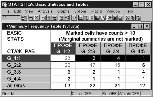 Рис. 4. Вычисление процента по сегментным группам в программе STATISTICA 3