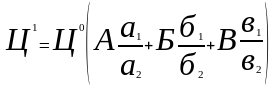 А, Б, С – доли материальных затрат, зарплаты персонала и прочих элементов цены