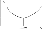 00.000 единиц. И каково было удивление покупателя, когда Марита предложил максимальную скидку на партию, состоящую из 10.000, и минимальную – на партию из 100.000 транзисторов. А хитрый Марита при принятии этого решения руководствовался идеей, которая нам уже давно стала знакомой и близкой, и которую мы изображаем в виде следующего графика. Оптимальный объем производства при имеющихся мощностях приходился у ”Sony” на 10.000 единиц. Расширение производства до 100.000 единиц, с одной стороны, потребовало бы роста предельных затрат на единицу продукции, а, с другой, - увеличило бы риск компании, так как пришлось наращивать мощности, нанимать дополнительную рабочую силу, закупать новое оборудование, и все это при отсутствии гарантий того, что на следующий год договор будет продлен. Таким образом, в нашем инвестиционном проекте очень четко должен быть разобран вопрос о скидках, мы должны ясно представлять, к какому объему покупок они будут поощрять нашего покупателя.
