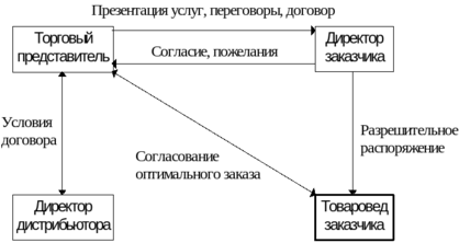 Для полного раскрытия системы организации сбыта рассмотрим элементы схемы работы торгового представителя с дистрибьютором.