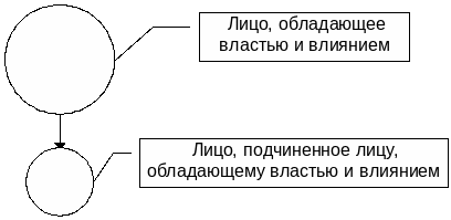 Зависимые отношения - это такие отношения, при которых одна из сторон имеет всю власть и возможность влияния на отношения, тогда как другая сторона является объектом санкций, наград или наказаний, определяемых и назначаемых властной стороной, схематично это представлено на рис. 15.