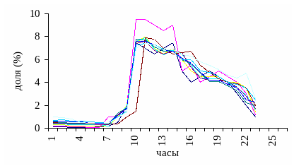 Рисунок 3 - Распределение трафика в зависимости от времени суток