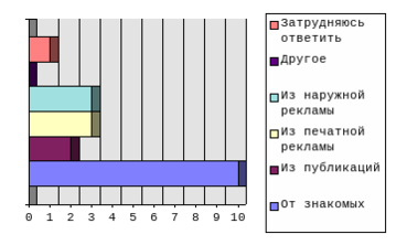 Необычные результаты были получены в ответе на второй опрос - "Откуда Вы получили первую информацию о БФ СГИ?".