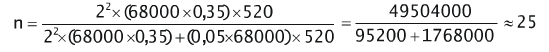 N - количество магазинов (520), торгующих морепродуктами; z - нормированное отклонение (2); E - ошибка выборки (5%); s - среднеквадратичное отклонение по признаку "ежемесячный размер товарооборота по морепродуктам". Если средний размер товарооборота по морепродуктам в месяц на один магазин оценить как 68 тысяч тенге, то предположим, что среднеквадратическое отклонение составит 35% от этой средней величины, учитывая, что есть крупные, средние и мелкие магазины или ± 24 000. Е = ± 5% от средней величины товарооборота. Отсюда, выборка составит: