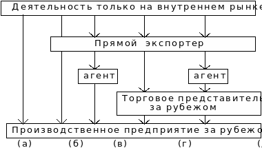 | Международный маркетинг | - экспортер глубоко и постоянно исследует зарубежный рынок, использует все инструменты маркетинга и различные формы внешнеэкономических связей: