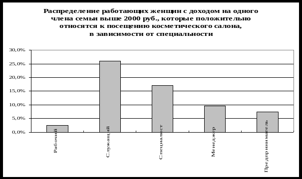Основную категория потенциальных посетителей салона составляют специалисты и служащие.