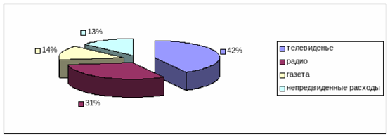 Необходимо также выделение определенных расходов на осуществление рекламы посредством отдельных средств ее распространения. Например, для региона КМВ рекламный бюджет может распределяться следующим образом.(Рис. 2.3)