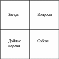 Положение внутри матрицы подсказывает возможную стратегию: для « звезд» - сохранение лидерства; для « собак » - уход с рынка или низкая активность; для « знаков вопроса» - инвестирование и селективное развитие; для «дойных коров» - получение максимальной прибыли.