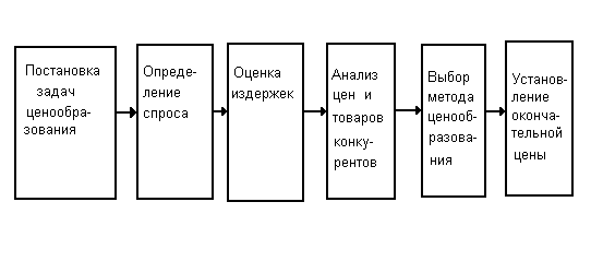 Таким образом, возможности и проблемы политики цен меняются в зависимости от типа рынка. За исключением случаев работы на рынках чистой конкуренции, фирмам необходимо иметь упорядоченную методику установления исходной цены на свои товары. На рис. 9 представлена методика расчёта цен, состоящая из шести этапов, которые будут рассмотрены далее.