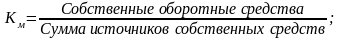 Коэффициент маневренности собственных средств (Км) свидетельствует о степени мобильности (гибкости) использования собственных средств предприятия и рассчитывается по формуле: