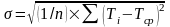 Среднеквадратическое отклонение (Тi от Тср) рассчитывается по формуле:
