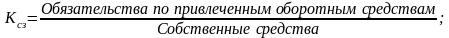 Коэффициент соотношения собственных и заемных средств (Ксз), отражающий, с одной стороны, степень зависимости предприятия от заемных средств, а с другой – безопасность стороннего займа, рассчитывается по формуле: