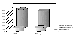При возникновении рыночных отношений ситуация резко изменилась. По данным ГНИИ "Биоэффект", до 1991 г. в СССР действовало примерно 8 тысяч патентов на изобретения и промышленные образцы, принадлежащие в основном иностранным юридическим лицам. В 1996 году поддерживалось в действии уже около 80 тысяч патентов на изобретения и охранялось более 90 тысяч товарных знаков , при нарушении патентных прав стали возникать конфликты; часть из них дошла до судебного разбирательства и кое-кто получил удовлетворение в виде судебного решения.
