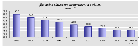 За січень 2009 року населення України зменшилось на 27,8 тис. осіб і на 1 лютого 2009 року його кількість становила 46,1 млн. осіб.