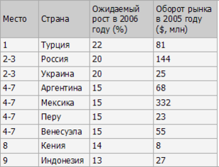 Это также приводит к искажению официальных данных, касающихся общемировых затрат на проведение маркетинговых исследований, так как они не учитывают расходы фирм, осуществляющих изучение рынков своими силами. Учитывая эти погрешности все же можно дать общую картину, по данным отчета Европейского общества исследователей рынка и общественного мнения (ESOMAR), посвященного состоянию мирового рынка маркетинговых исследований в 2005 году. ESOMAR оценила объемы рынка: где по темпам роста лидирует Турция (22%), но по обороту рынка лидирует Мексика – 332 млн. долл.