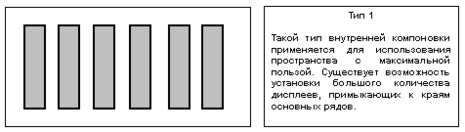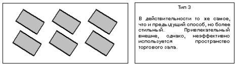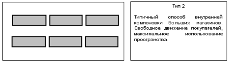 Рисунок 1. Типы расположения торгового оборудования внутри торгового зала