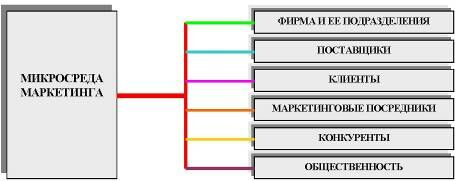 Микросреда маркетинга – область деятельности постоянно меняющихся сил и факторов, имеющих преимущественно оперативный (операционный) характер. Микросреда маркетинга – это те элементы в окружении фирмы, которые контролируемы ею и которые она может выбрать при определенных условиях.