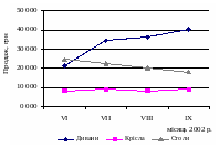 Рис. 3.2.5. Динаміка продажу товарів за vi—ix місяці 2002 p.