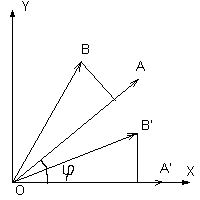 Теперь повернем оба наших аектора так, чтобы вектор A совпал с одной из осей. В этом случае проекция вектора B на вектор A определяется особенно просто - надо взять компоненту, соответствующую оси X, и эта величина и будет проекцией.