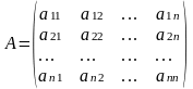 Матрица называется квадратной порядка n, если число ее строк равно числу столбцов и равно n:
