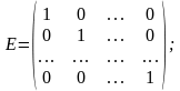 Диагональная матрица порядка n называется единичной, если все элементы ее главной диагонали равны 1. Матрица любого размера называется нулевой или нуль матрицей, если все ее элементы равны нулю. Единичная матрица обозначается буквой Е, нулевая – О. Матрицы имеют вид: