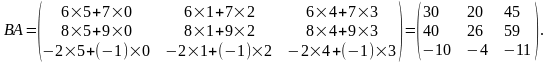 Примеры. Найдем произведения матриц АВ и ВА, если они существуют.