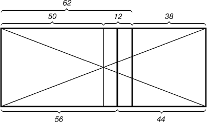 Рис. 3. Деление прямоугольника линией второго золотого сечения