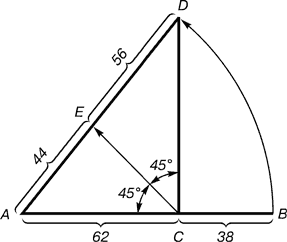 Деление осуществляется следующим образом. Отрезок АВ делится в пропорции золотого сечения. Из точки С восставляется перпендикуляр СD. Радиусом АВ находится точка D, которая соединяется линией с точкой А. Прямой угол АСD делится пополам. Из точки С проводится линия до пересечения с линией AD. Точка Е делит отрезок AD в отношении 56:44.
