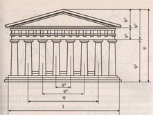 Парфенон имеет 8 колонн по коротким сторонам и 17 по длинным. Отношение высоты здания к его длине равно 0,618. Если произвести деление Парфенона по «золотому сечению», то получим те или иные выступы фасада. При его раскопках обнаружены циркули, которыми пользовались архитекторы и скульпторы античного мира. В Помпейском циркуле (музей в Неаполе) также заложены пропорции золотого деления.
