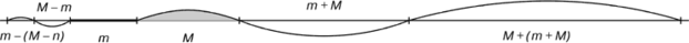 Если на прямой произвольной длины, отложить отрезок m(φ), рядом откладываем отрезок M. На основании этих двух отрезков выстраиваем шкалу отрезков золотой пропорции восходящего и нисходящего рядов