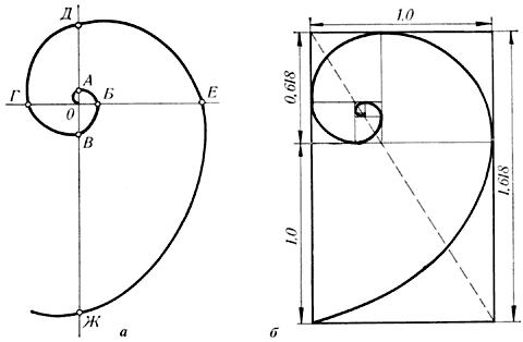 Последовательно отсекая от золотых прямоугольников квадраты до бесконечности, каждый раз соединяя противоположные точки четвертью окружности, мы получим довольно изящную кривую. Первым внимание на неё обратил древнегреческий ученый Архимед, имя которого она и носит. Он изучал её и вывел уравнение этой спирали.