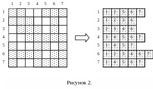 огда, для хранения матрицы жесткости необходимо построчно запоминать информацию о коэффициентах, соответствующих узлам, с которыми связан данный узел. На рис. 2 приведены матрица жесткости и ее компактное представление для сетки изображенной на рис 1 [9].