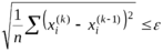 - заданная точность. В качестве другого критерия сходимости иногда удобнее использовать среднеквадратичную разность между решениями, полученными на соседних итерациях: