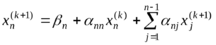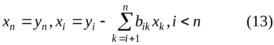 Так как коэффициенты bij определены (8), то значения неизвестных, начиная с последнего, вычисляем по следующим формулам: