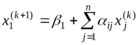 Решим систему (16) методом последовательных приближений. За нулевое приближение примем столбец свободных членов. Любое (k+1)-е приближение вычисляют по формуле