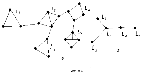На рис. 5.4 граф G имеет 5 листов L1, L2, L3, L4, L5 и 4 моста, а граф G' показывает, как связаны между собой листы графа G.