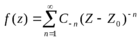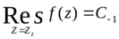 , где L – ориентированный против часовой стрелки контур целиком расположенный в круге радиуса R, содержащем Z0. Вычет существует только для изолированных особых точек. Очевидно, что вычет функции f(z) при Z=Z0 равен первому коэффициенту ряда главной части Лорана :