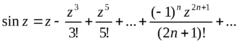 Формула (2) записана для всех Z принадлежащих некоторому кругу | Z-Z0 | Функция f (z), которая может быть представлена в виде ряда (2) является аналитической функцией. Неаналитическая функция в ряд Тейлора не раскладывается. Причем | Z | < R, R . Формулы ЭЙЛЕРА. Применим разложение (3) положив, что Z = ix и Z= - ix; Аналогично взяв Z = - ix получим : Из (6) и (7) можно выразить т.н. формулы Эйлера : В общем случае : Известно, что : Тогда из (9) и (10) вытекает связь между тригонометрическими и гиперболическими косинусами и синусами: Ряд ЛОРАНА. Пусть функция f(z) является аналитической функцией в некотором круге радиусом R, тогда ее можно разложить в ряд Тейлора (2). Получим тот же ряд другим путем. ТЕОРЕМА 1. Однозначная функция f(Z) аналитическая в круге радиусом |Z-Z0| < R раскладывается в сходящийся к ней степенной ряд по степеням Z-Z0. Опишем в круге радиусом R окружность r, принадлежащую кругу с радиусом R. Возьмем в круге радиуса r точку Z, а на границе области точку , тогда f(z) будет аналитична внутри круга с радиусом r и на его границе. Выполняется условие для существования интеграла Коши : Поскольку Представим равномерно сходящимся рядом в круге радиуса r, умножая (12) на 1/(2i) и интегрируя по L при фиксированном Z, получим : слева интеграл (13) который равен f (Z), а справа будет сумма интегралов : Это разложение функции f (Z) в круге R в ряд Тейлора. Сравнивая (14) с рядом (2) находим, что ТЕОРЕМА 2. Если однозначная функция f(Z) аналитична вне круга с радиусом r с центром в точке Z0 для всех Z выполняется неравенство r < |Z-Z0 |, то она представляется рядом : где h - ориентированная против часовой стрелки окружность радиуса r (сколь угодно большое число). Если обозначить ТЕОРЕМА 3. Если однозначная функция f(Z) аналитическая в кольце Z< |Z-Z0 | f1 и f2 можно представить в виде двух рядов : Ряд (19) – ряд Лорана, при этом ряд (20) сходится в круге радиуса R, ряд (21) сходится вне круга радиуса R функции f2(Z). Общая область сходимости ряда – кольцо между r и R. f1(Z) – правильная часть. f2(Z) – главная часть ряда Лорана. Ряд Тейлора – частный случай ряда Лорана при отсутствии главной его части. Классификация изолированных особых точек. Вычеты. Определение 1. Особой точкой функции f(Z) определенной в области (замкнутой) G, ограниченной Жордановой кривой, называется точка Z=Z0 G в которой аналитичность функции f1(Z) нарушается. Рабочая точка Z=Z0 функции f(Z), ограниченной в круге |Z-Z0| Устранимые особые точки. Ими называются особые точки, для которых существует Если для особой точки существует предел Если Если С-n=0, то особая точка есть устранимая особая точка. Пусть f(Z0)=C0 и C-n для всех n=1,2,3,..,m отличного от 0, а для всех n m+1 C-n=0, тогда Z=Z0 будет являться полюсом порядка m. При m>1 такой полюс будет называться простым. Определение 2. Вычетом функции f(Z) в круге |Z-Z0| Если полюс имеет кратность m 1, то для определения вычетов используется формула : при m=1 : Основная теорема о вычетах. Пусть f(z) аналитическая в области G кроме конечного числа полюсов Z = a1, a2, …, ak. –произвольный, кусочно-гладкий замкнутый контур содержащий внутри себя эти точки и целиком лежащий внутри области G. В этом случае интеграл Пример : Особые точки : Z1=1, Z2= - 3. Определим порядок полюсов – все полюсы первого порядка. Используем формулу (3) :