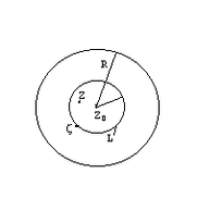 ак как левый интеграл в (2) не зависит от выбора контура интегрирования, то и правый интеграл также не будет зависеть от выбора контура. Выберем в качестве окружность с радиусом . Тогда: