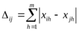 Иногда в качестве меры различия используется расстояние, вычисляемое по формуле: