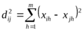 (где xih, xjh - значения h-го признака для i-го и j-го объектов, а m - число характеристик), либо само евклидово расстояние. Если признакам приписывается разный вес, то эти веса можно учесть при вычислении расстояния