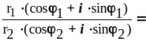 Z1Z2= r1·r2[cosj1·cosj2 – sinj1·sinj2 + i·( sinj1·cosj2 + cosj1·sinj2)]=