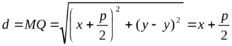 Обозначим через Q основание перпендикуляра, опущенного из точки М на директрису. Очевидно, точка Q имеет координаты