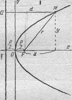 число положительное; это следует из того, что М (х; у) должна находиться с той стороны от директрисы, где находится фокус, т. е. должно быть